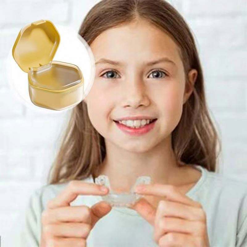Orthodontic Retainer Case Sealed Denture Cleaning Denture Cleaner Box 2 Layer Portable False Teeth Container