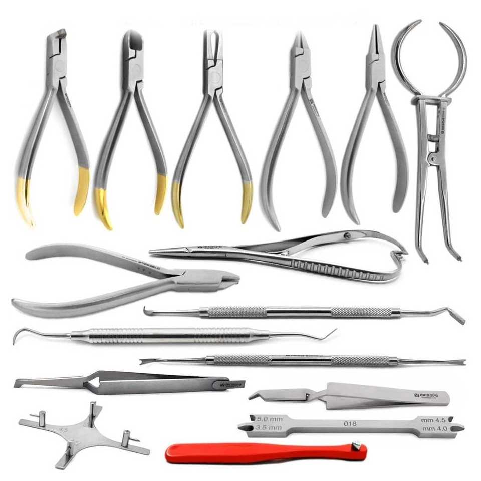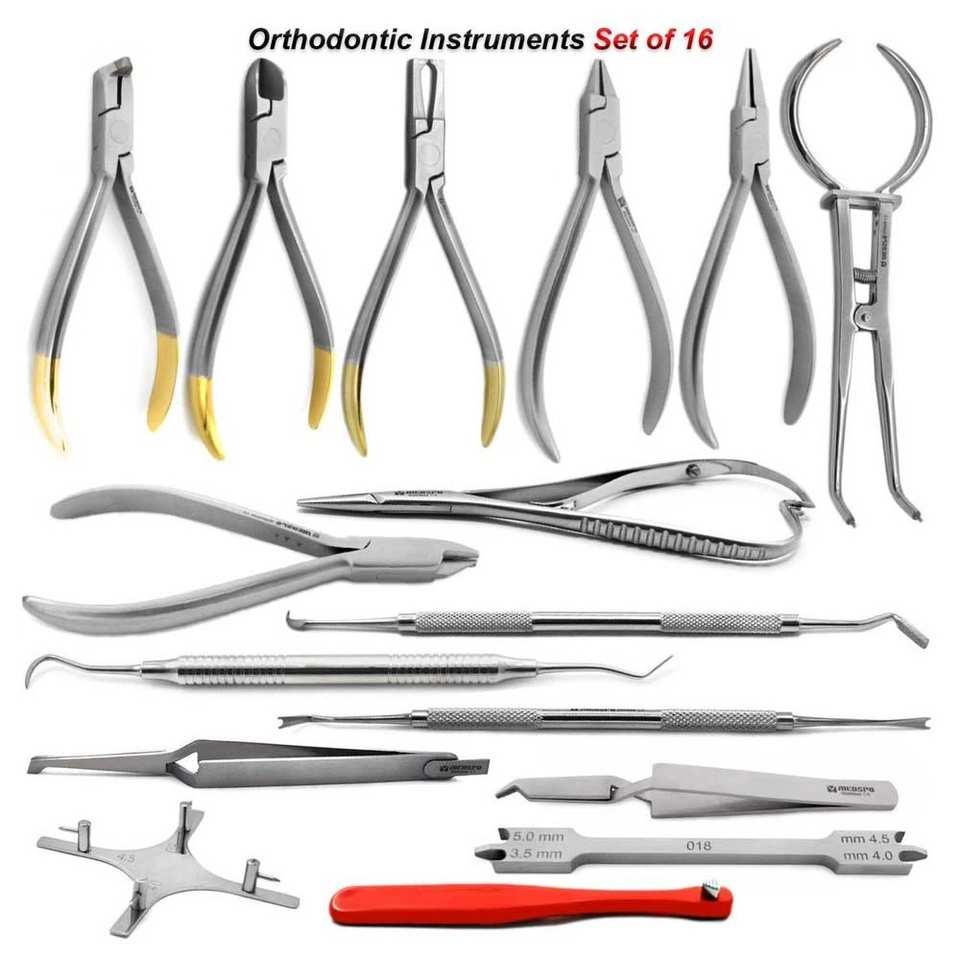 ชุดเครื่องมือจัดฟัน 16 ชิ้น คีมจัดฟัน ลวดจัดฟัน คีมตัดสายรัดฟัน เครื่องมือทันตกรรม ชุดสำหรับทันตแพทย์จัดฟันมืออาชีพ