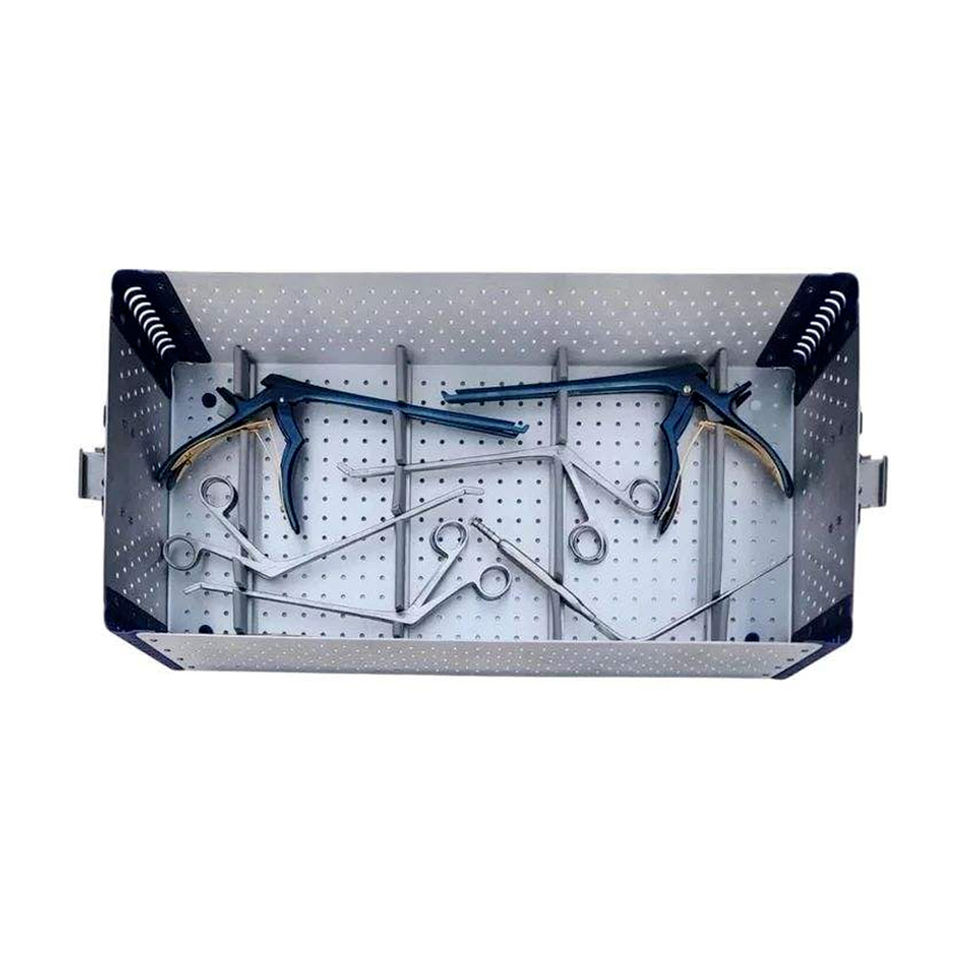 ชุดเครื่องมือผ่าตัดกระดูกสันหลังส่วนเอวแบบแมนนวล ผลิตจากเหล็กกล้าไร้สนิมเยอรมัน บรรจุในกล่องฆ่าเชื้อแบบออโตเคลฟได้ พร้อมใบรับรอง CE