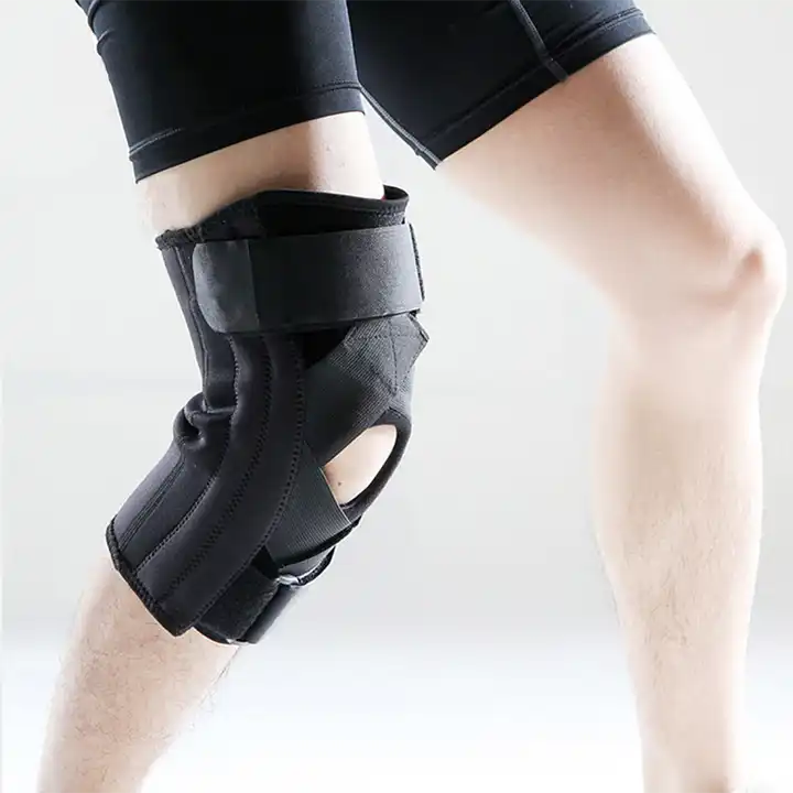 อุปกรณ์พยุงเข่าแบบปรับได้พร้อมบานพับคู่ด้านข้างตัวยึดเกาะสำหรับบรรเทาอาการปวด