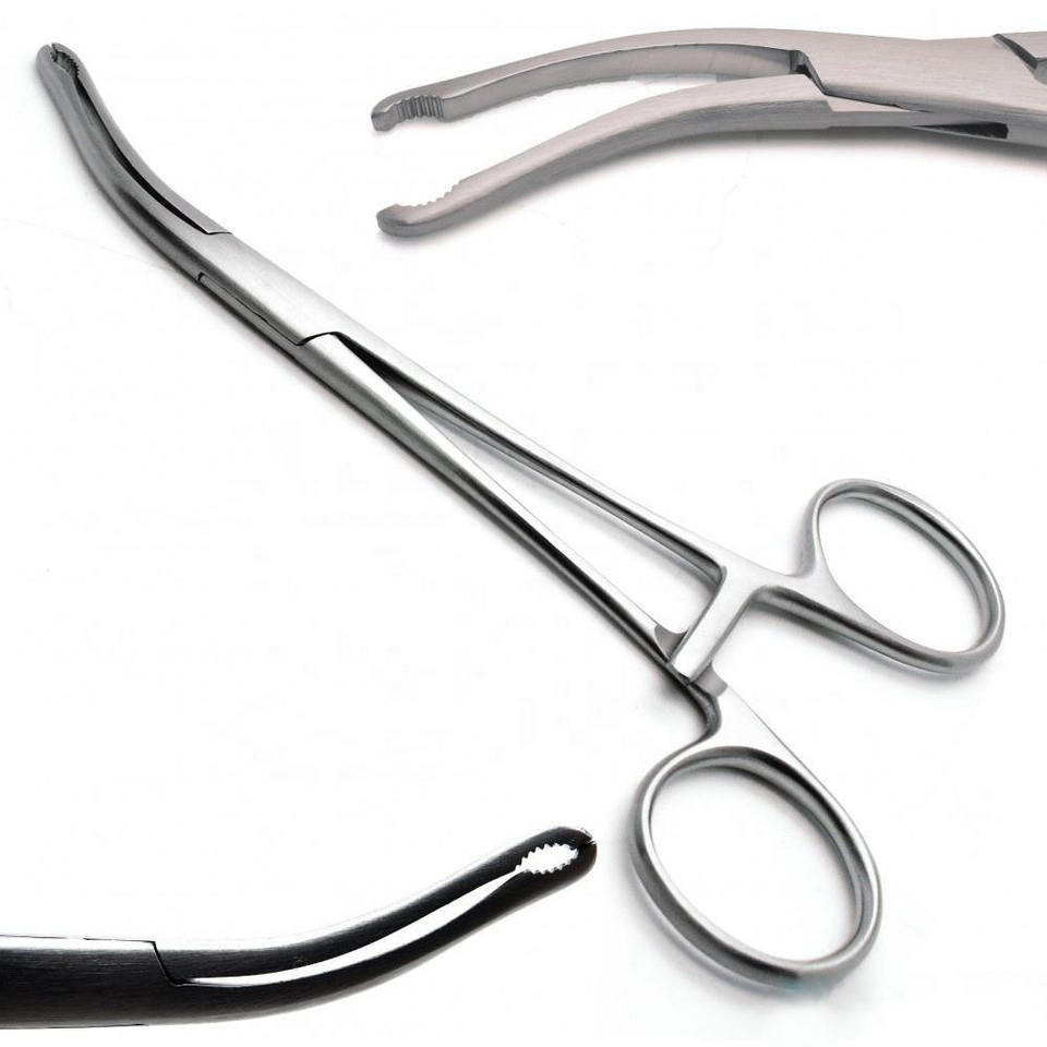 คีมจัดกระดูกแบบโค้ง 5.5 นิ้ว สำหรับผ่าตัด ชนิดมีตัวล็อค ทำจากเหล็กกล้าไร้สนิม ใช้งานด้วยมือ สามารถนึ่งฆ่าเชื้อได้
