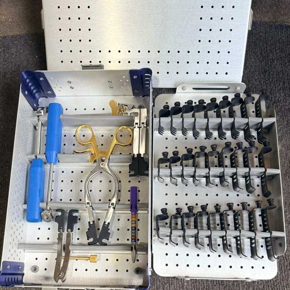ชุดเครื่องมือผ่าตัดสำหรับศัลยกรรมกระดูกและเส้นประสาทและศัลยกรรมกระดูกสันหลัง ประกอบด้วยเครื่องมือถ่างกระดูกสันหลังส่วนคอแบบออร์โธปิดิกส์