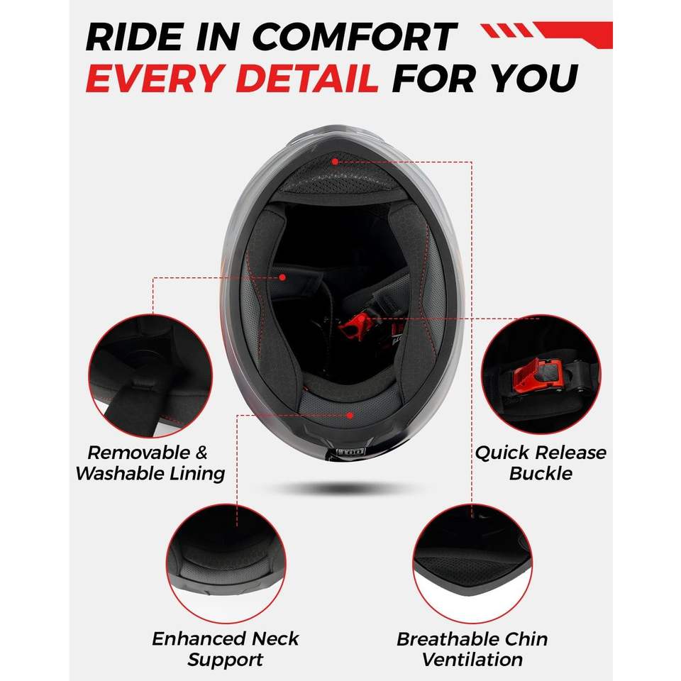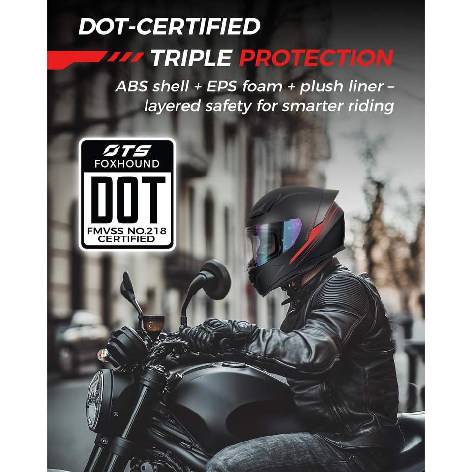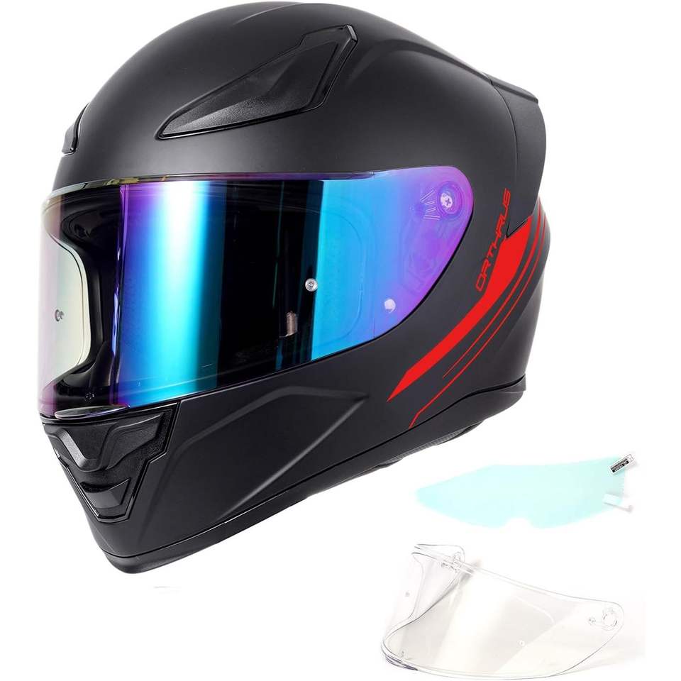 หมวกกันน็อคมอเตอร์ไซค์แบบเต็มใบ Orthrus มาตรฐาน DOT ดีไซน์แบบเปิดคางได้ วัสดุ ABS สีดำด้านแดง ไซส์ XL สภาพใหม่ สำหรับผู้ชาย ขับขี่มอเตอร์ไซค์