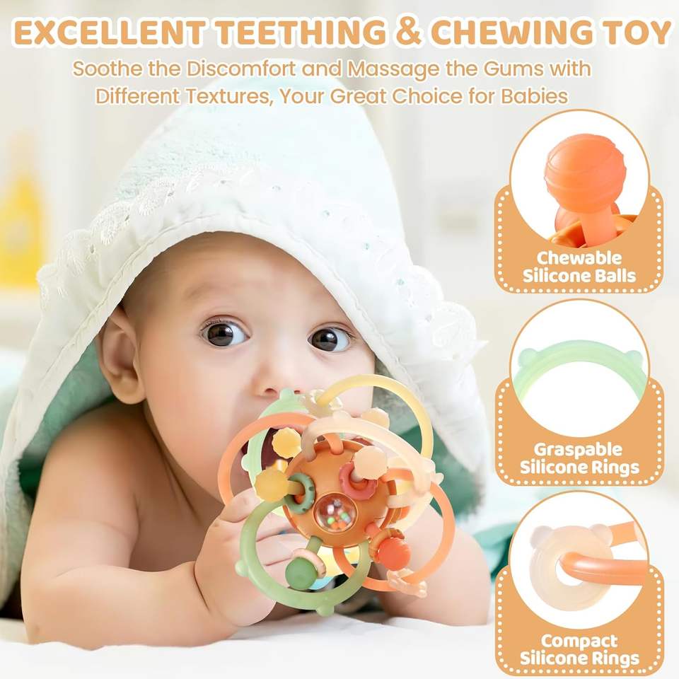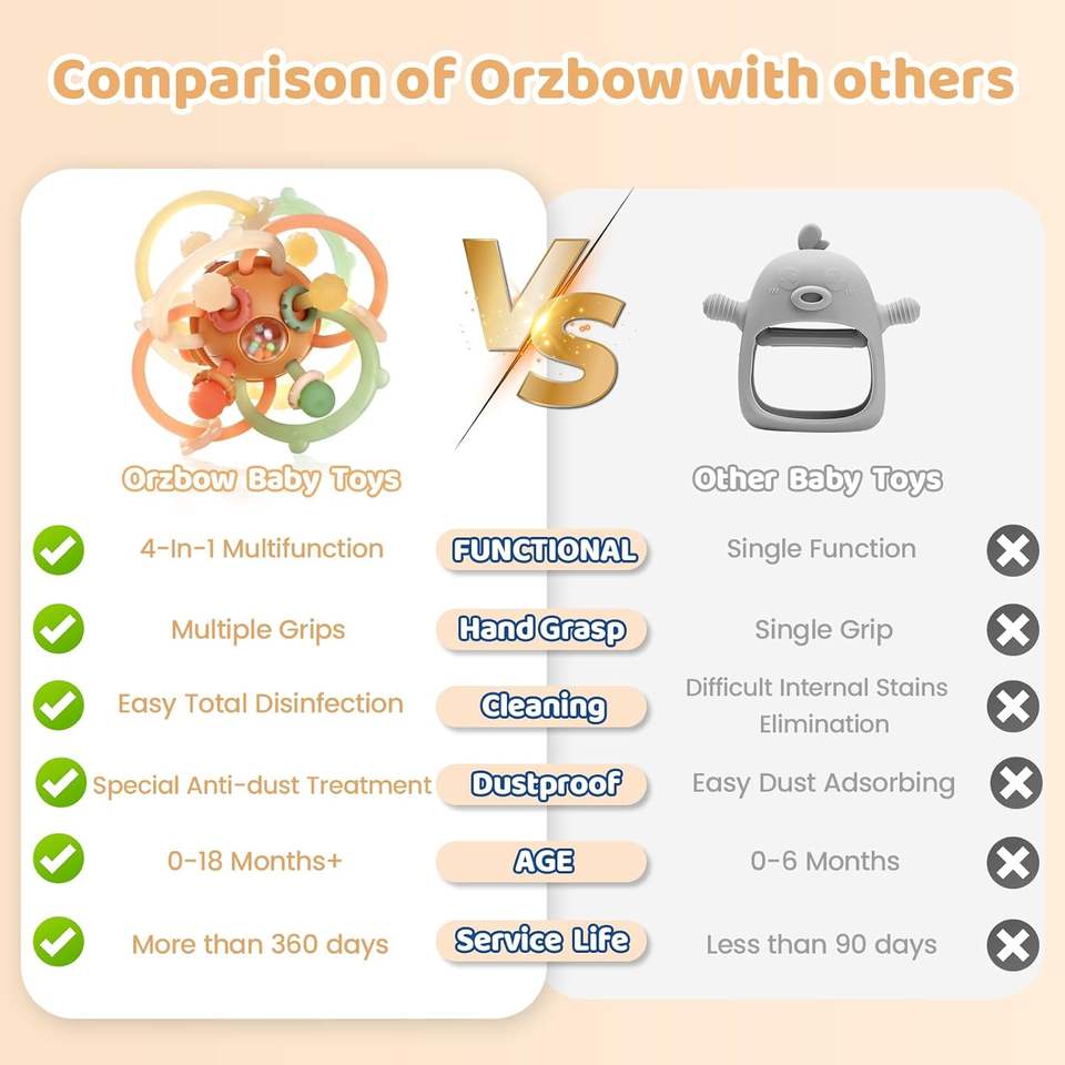 ลูกบอลยางกัดสำหรับเด็กทารก Orzbow แบบมอนเตสซอรี่ ของเล่นดนตรี ปลอดสาร BPA ทำจากซิลิโคนสีน้ำตาล ของเล่นเขย่ามือสำหรับเด็ก ของเล่นกัดสำหรับเด็กทารก ของเล่นเสริมพัฒนาการทางประสาทสัมผัส