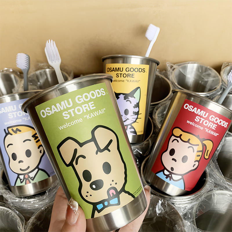 ร้านขายสินค้าโอซามุแก้วแปรงสีฟันสแตนเลส ดีไซน์การ์ตูน สำหรับใช้ในบ้านและหอพัก