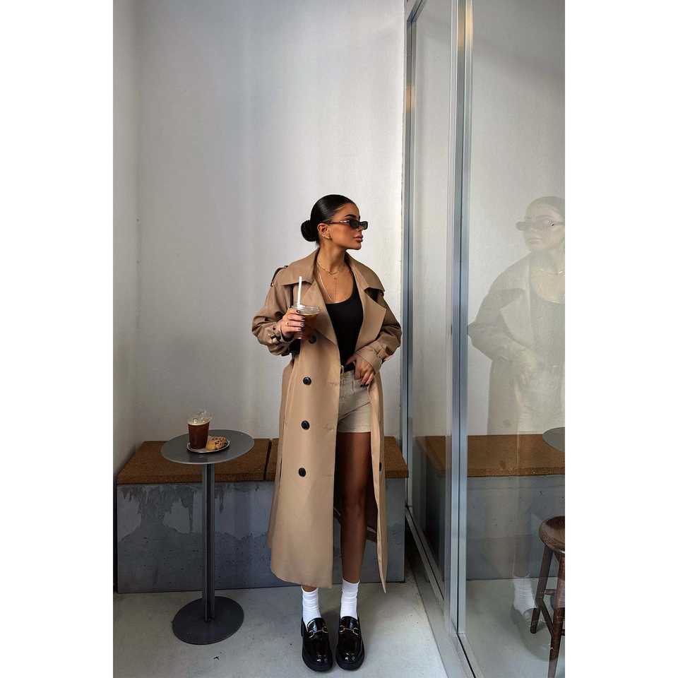เสื้อโค้ทเทรนช์โอซานน่าสำหรับผู้หญิง ผ้าขนแกะ พิมพ์ลาย ตกแต่งด้วยกระดุมสองแถว สไตล์ลำลอง สำหรับฤดูใบไม้ร่วงและฤดูหนาว ผ้าถัก