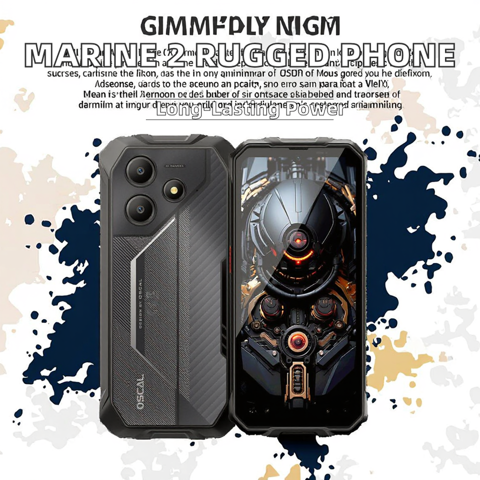 สมาร์ทโฟน Oscal Marine 2 4GB+64GB แบตเตอรี่ 11000mAh หน้าจอ 6.5 นิ้ว ระบบปฏิบัติการ Android 15 รองรับ 4G ทนทานสำหรับเล่นเกม มาตรฐานกันน้ำกันฝุ่น IP68/IP69K รีเฟรชเรท 90Hz แบรนด์ Blackview