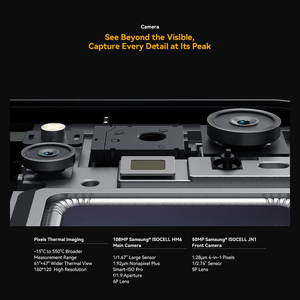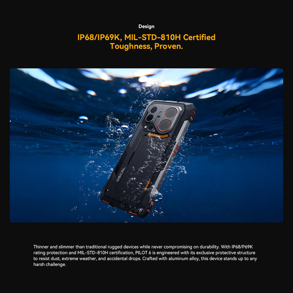 โทรศัพท์มือถือ Oscal Pilot 6 รุ่นทนทาน ความจุ 12+256GB กล้องถ่ายภาพความร้อน หน้าจอ 6.78 นิ้ว 120Hz กล้องหลัก 108MP ชิปเซ็ต G100 แบตเตอรี่ 10000mAh ระบบปฏิบัติการ Android 16