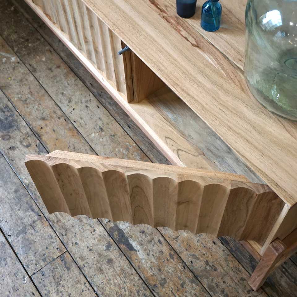 Oskar Modern Design Solid Acacia Wood 3 Door TV Unit for Living Room Bedroom Dining Hotel Apartment