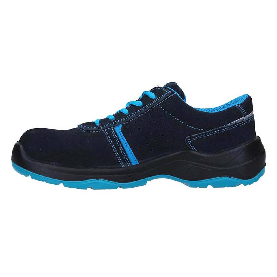 Osmio รองเท้าเซฟตี้ S1PS Fo SR หนังนิ่มเจาะรูหนังแท้สีน้ำเงินหนังพียูเหล็ก ESD โลหะฟรีสำหรับใช้ในโรงงาน