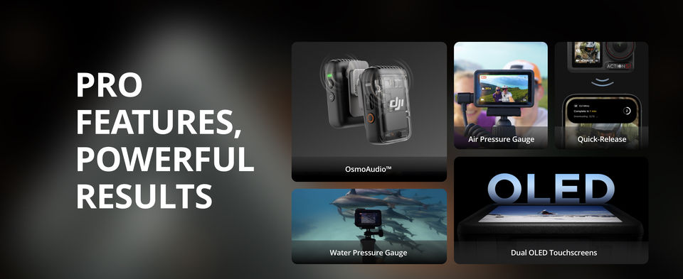 กล้อง Osmo Action 5 Pro 4K Ultra HD สำหรับขี่มอเตอร์ไซค์ ระบบกันสั่นภาพระดับเรือธง เหมาะสำหรับการเดินทางและวีล็อก