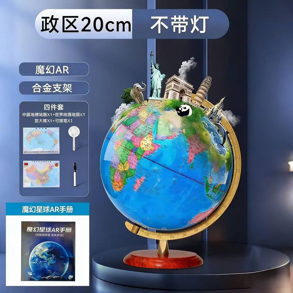 ลูกโลกไม้ขนาด 32 ซม. ความละเอียดสูง พร้อมฐานไม้และแกนแสดงเส้นละติจูดและลองจิจูด สำหรับนักเรียนมัธยมต้น