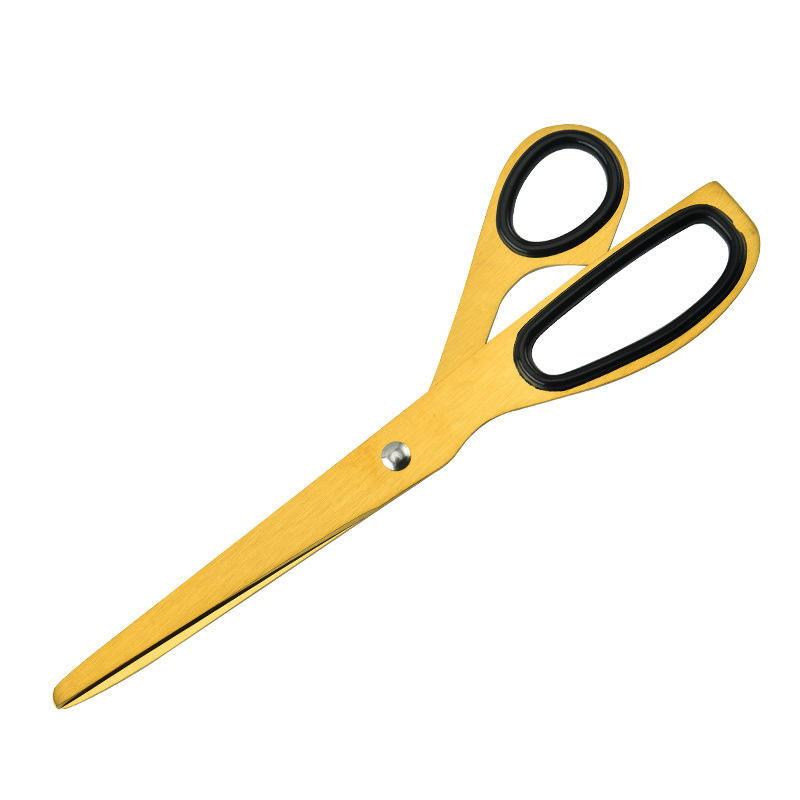 กรรไกรแบบอสมมาตรอื่นๆ สีทองดำ ใบมีดสแตนเลสทรงกลม สำหรับพิธีตัดริบบิ้นในสำนักงาน