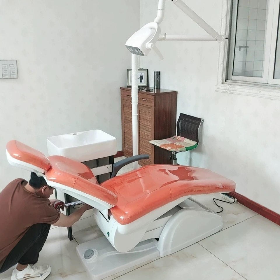 เก้าอี้ทันตกรรมไฟฟ้าสีเขียวหุ้มหนังแบบปรับเอนได้สำหรับใช้ในงานทันตกรรม