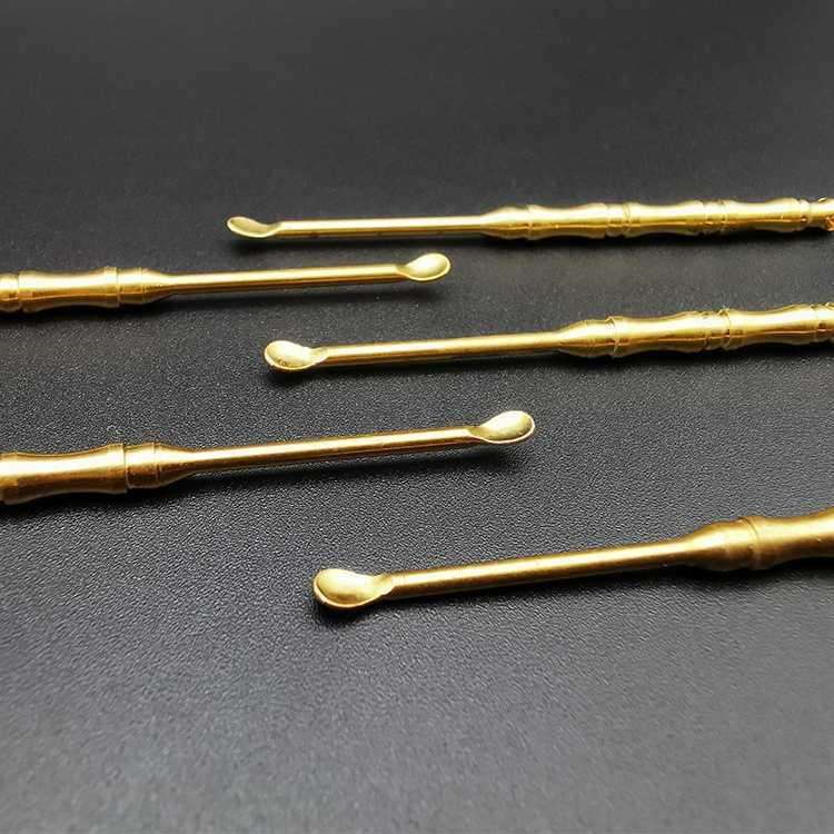 ที่แคะหูทองเหลืองทำมือ รูปทรงมีดขนาดเล็ก พกพาสะดวก สีทองแดง พร้อมพวงกุญแจแบบโบราณ ดีไซน์ไม้ไผ่