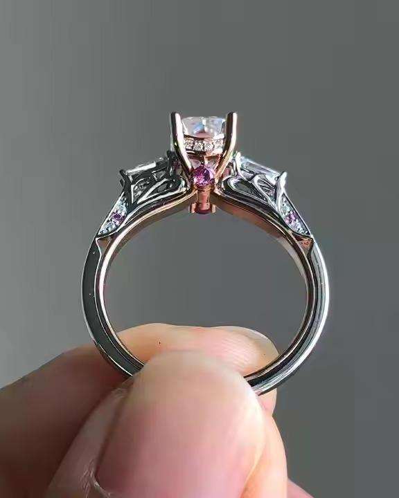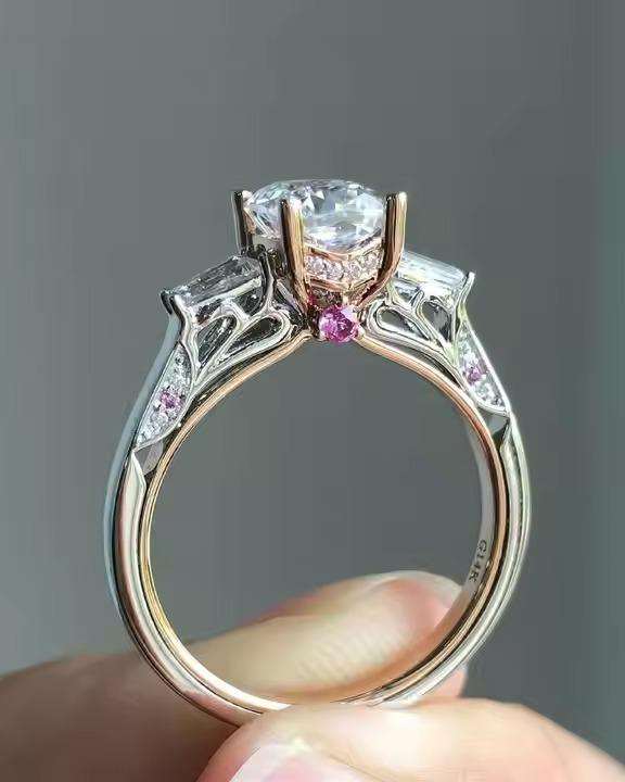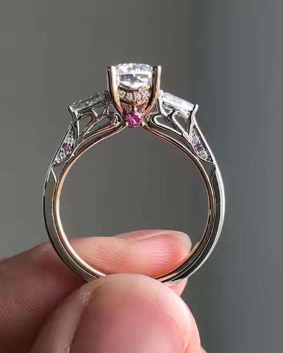 แหวนหมั้นเพชรโมอิสซาไนต์ 3 เม็ดทรงฮิปฮอป ดีไซน์หรูหรา ประดับด้วยวงแหวนรอบนอกแบบซ่อน ของขวัญครบรอบแต่งงาน ชุบโรเดียม