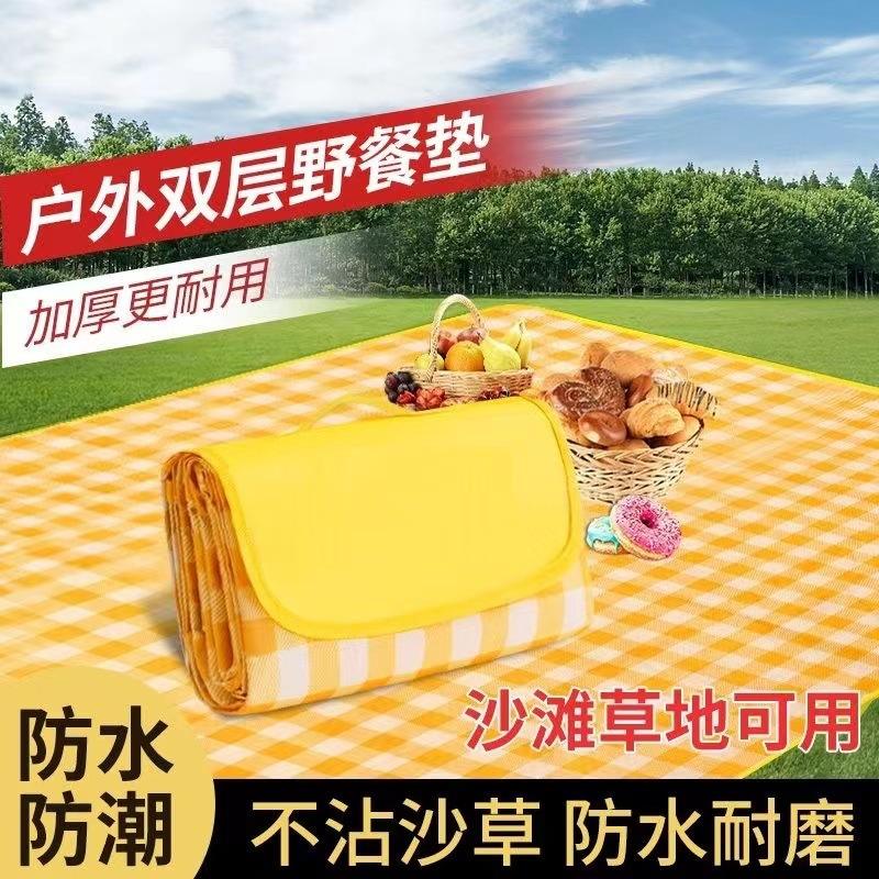 เสื่อปิกนิกกลางแจ้งอื่นๆ สีเหลืองลายตารางผ้าไม่ทอ กันน้ำ กันความชื้น พกพาสะดวก สำหรับ 1-8 คน