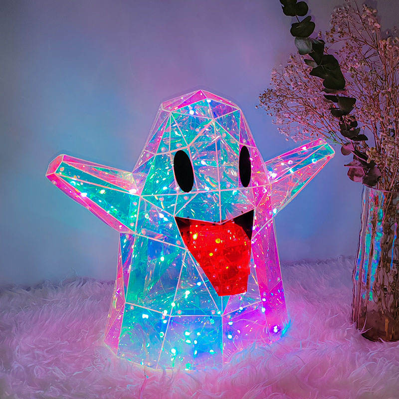 ของตกแต่งงานปาร์ตี้อื่นๆ3D ไฟ LED ผีตกแต่งงานปาร์ตี้ฮาโลวีนเรืองแสงสว่างขึ้นผีที่มีลิ้นสีแดง