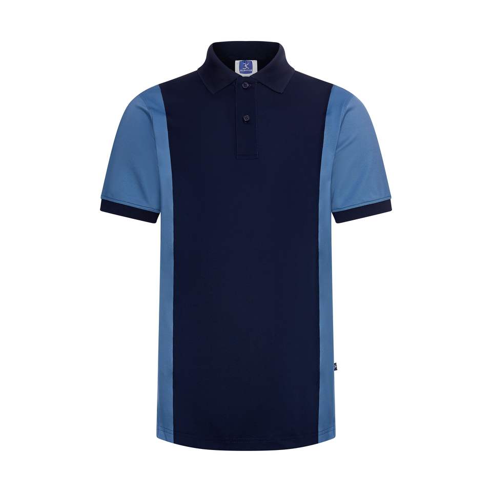 เสื้อโปโลมีแผงความคมชัดด้านข้างลำตัวและแขนเสื้อ