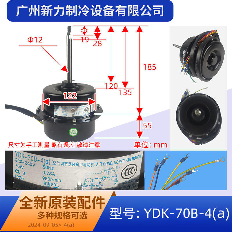 มอเตอร์แบบอะซิงโครนัสเฟสเดียว รุ่น YDK-70B-4a 240V สำหรับเปลี่ยนพัดลมภายนอกเครื่องปรับอากาศ McQuay
