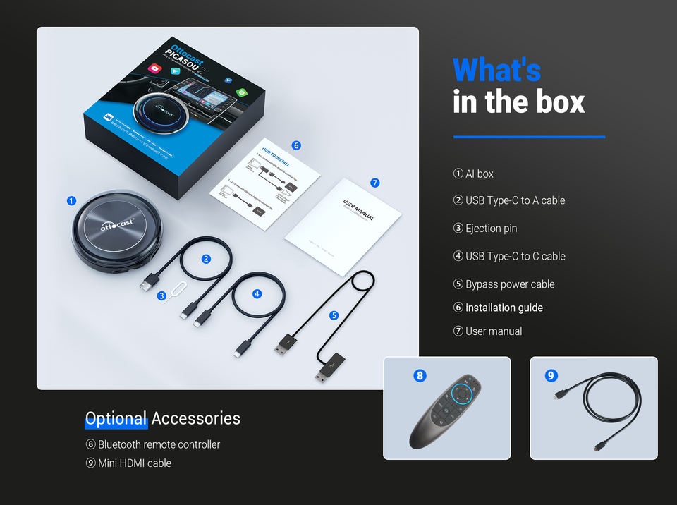 ออตโตมาคาสต์ PICASOU 2 Qualcomm Octa-Core Android 10 4 + 64G CarPlay กล่อง Android Ai พร้อมซิม4G
