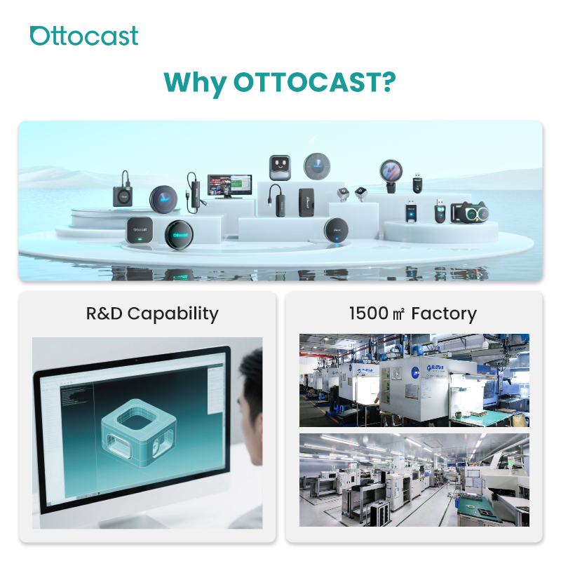 Ottocast อะแดปเตอร์ไร้สายในรถยนต์, อะแดปเตอร์สำหรับรถยนต์ทั่วไปพร้อม Qualcomm Snapdragon 680และ8GB + 128GB