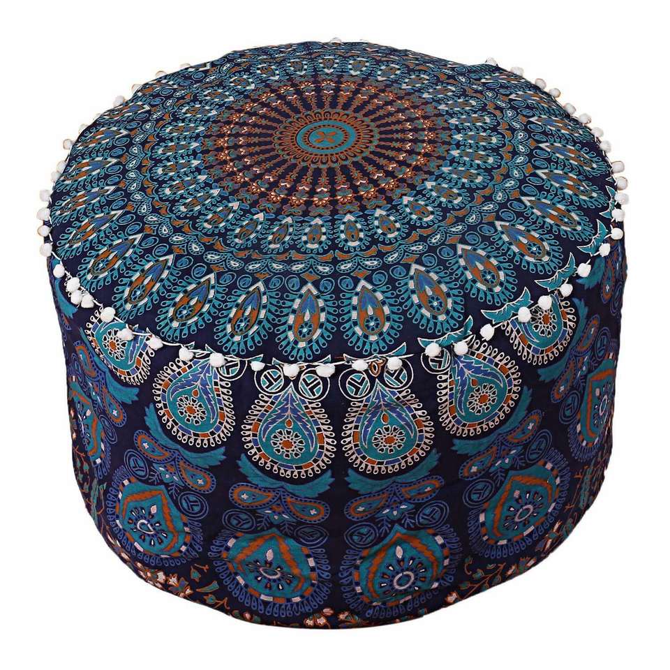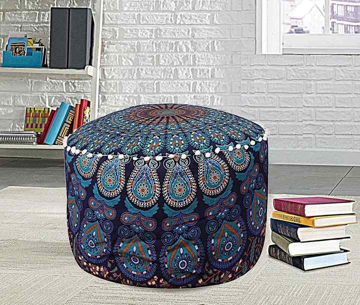 Product Name:Ombre Mandala Cotton Round Ottoman Pouf Cover