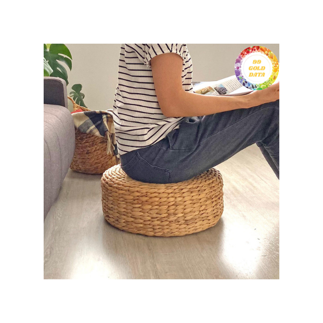 พัฟผักตบชวาออตโตมันทำด้วยมือจากเวียดนามวัสดุเส้นใยธรรมชาติทอสำหรับเฟอร์นิเจอร์ห้องนั่งเล่นและห้องนั่งเล่น