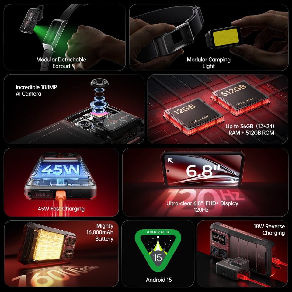 สมาร์ทโฟน Oukitel WP300 รุ่นทนทาน ระบบปฏิบัติการ Android 15 ชิปประมวลผล 7050 แบตเตอรี่ขนาดใหญ่ 16000mAh หน่วยความจำ 12+512GB โทรศัพท์มือถือ Oukitel