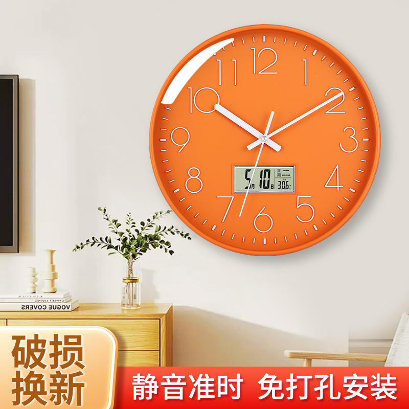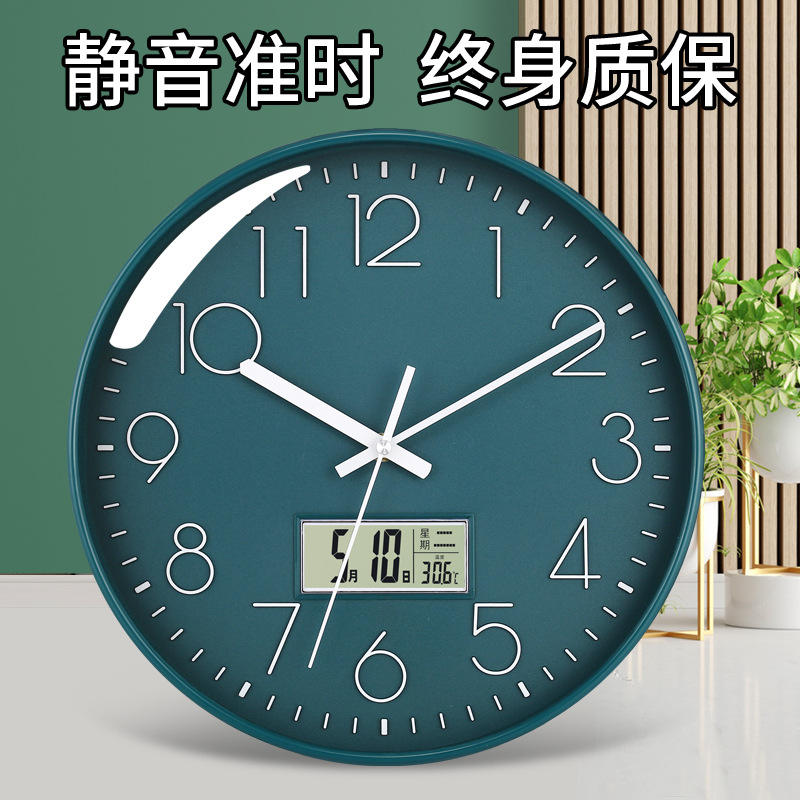 นาฬิกาแขวนผนังแบบอนาล็อกทรงกลม Oushidon แบบเงียบ ใช้พลังงานจากแบตเตอรี่ ตกแต่งบ้าน ห้องนั่งเล่น พร้อมจอแสดงผลดิจิตอลและอุณหภูมิ