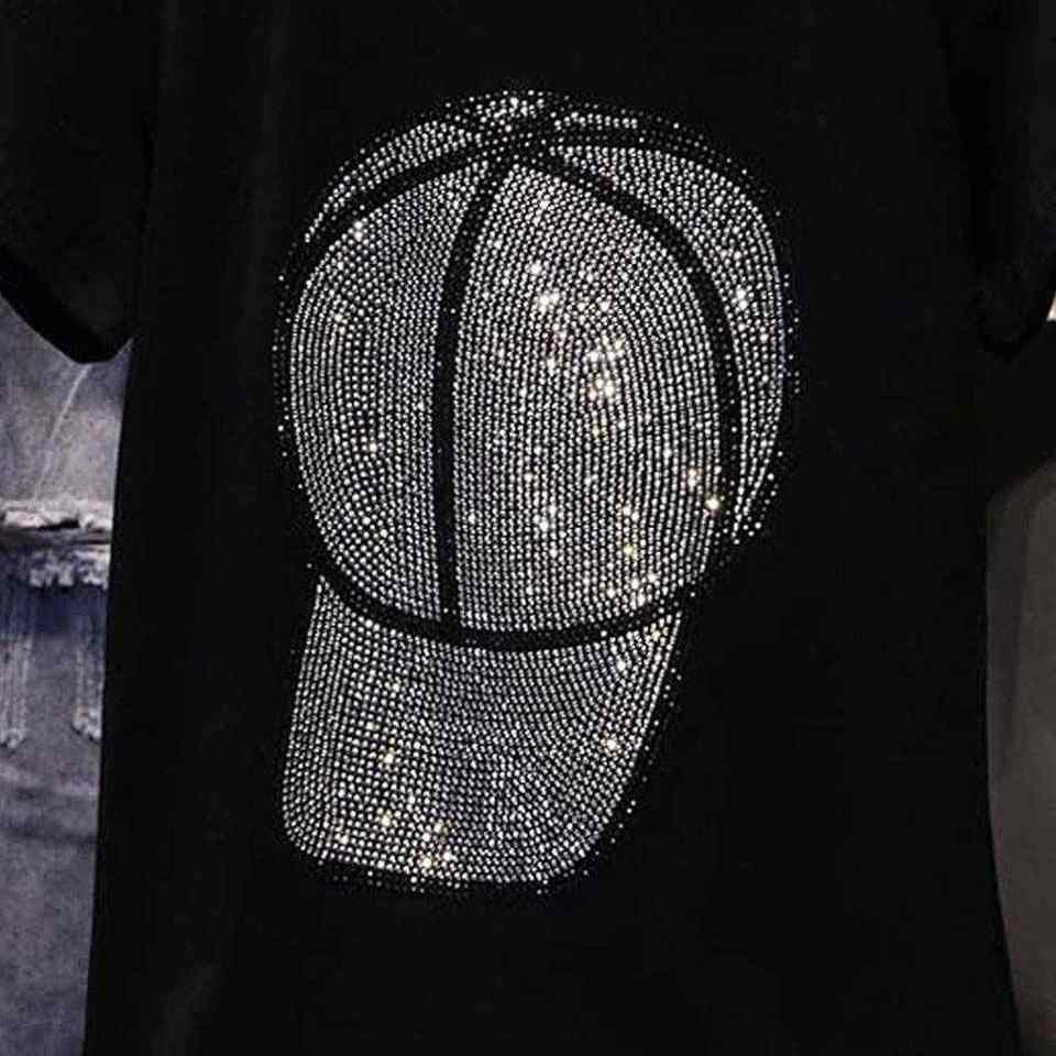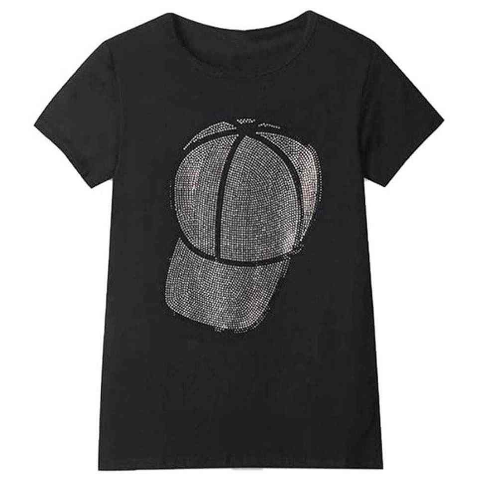 เสื้อยืดผู้หญิงทรงปกติ สวมใส่สบาย ระบายอากาศได้ดี ผลิตจากผ้าโพลีเอสเตอร์ผสมฝ้าย แขนสั้น เหมาะสำหรับฤดูใบไม้ผลิและฤดูร้อน ประดับด้วยคริสตัล