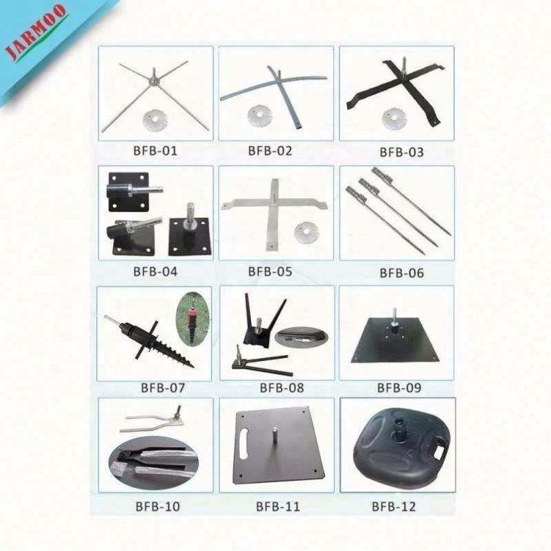 ฐาน:เดือย, สกรู, ฐานไขว้รูปตัว X พร้อมถุงน้ำ, แผ่นโลหะ ฯลฯ