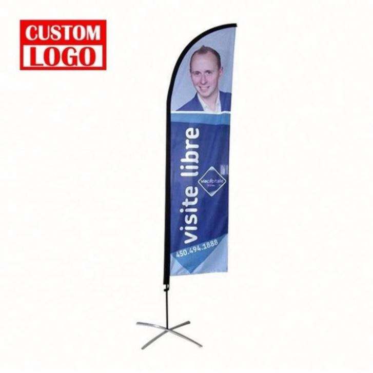 ธงขนนกพิมพ์ลายสองด้าน โพลีเอสเตอร์ 100% สำหรับใช้งานกลางแจ้ง ธงชายหาดโฆษณาแบบกำหนดเองได้ พร้อมขนาดที่กำหนดเอง