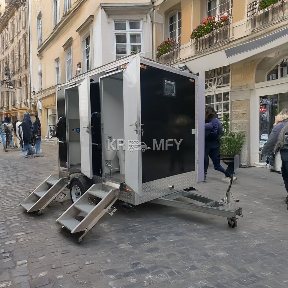 ห้องน้ำเคลื่อนที่กลางแจ้ง 2 ห้อง สำหรับชายและหญิง ห้องน้ำพกพา ห้องน้ำหรูหราแบบรถพ่วง