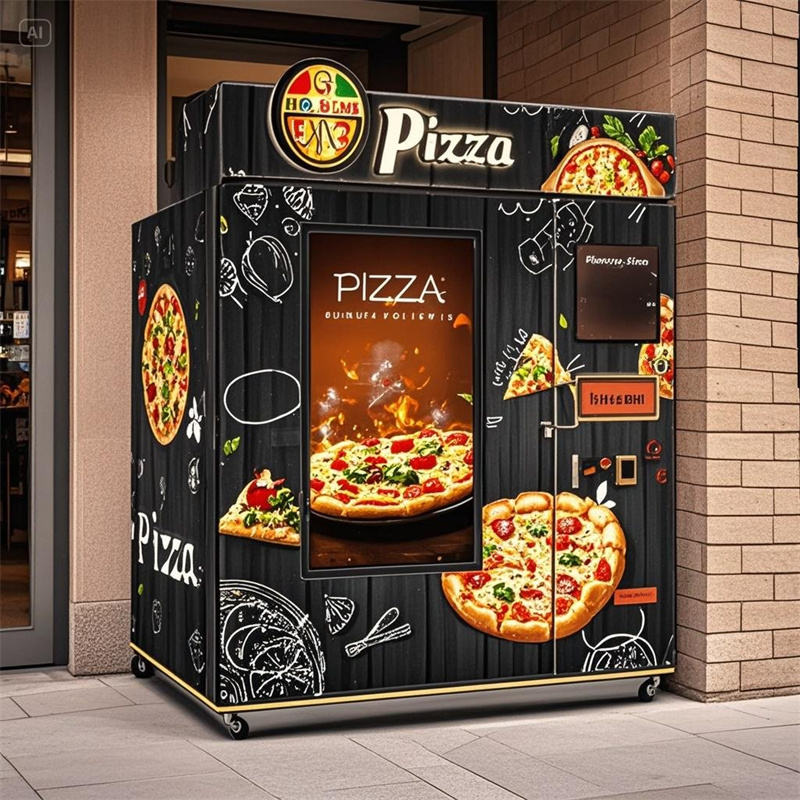 ตู้ขายอาหารด่วนบริการตนเองร้านขายพิซซ่าร้อนอัตโนมัติเต็มรูปแบบกลางแจ้ง24ชั่วโมง