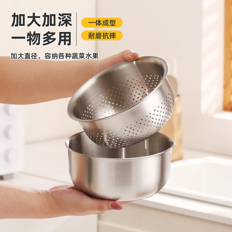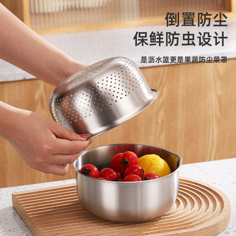ชุดอ่างล้างจานสแตนเลส 304 สำหรับใช้งานกลางแจ้ง พร้อมชามสลัด สำหรับแคมป์ปิ้ง ล้างผัก ล้างข้าว ใส่ผลไม้