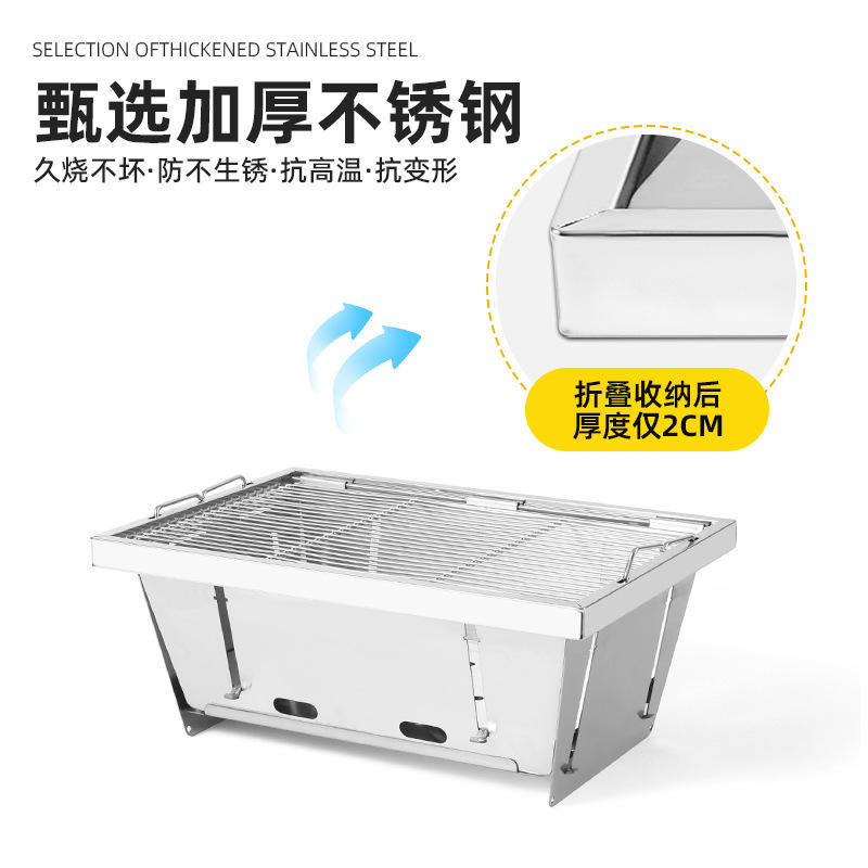 เตาปิ้งย่างพับได้ สแตนเลส 304 สำหรับใช้งานกลางแจ้ง ใช้ถ่าน เหมาะสำหรับตั้งแคมป์และปิกนิก