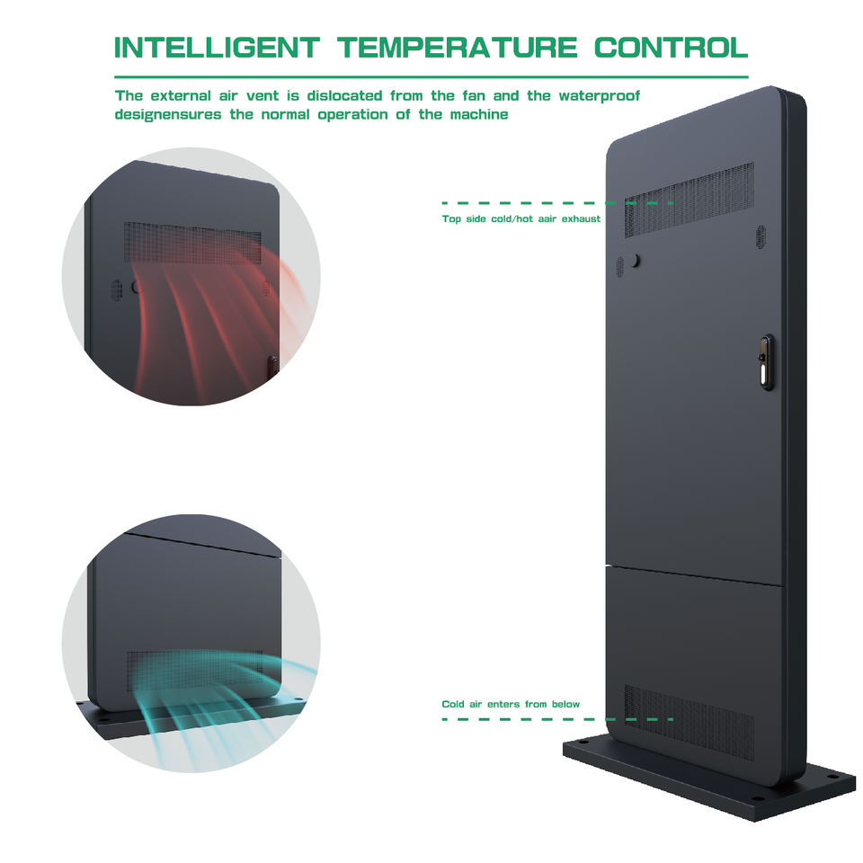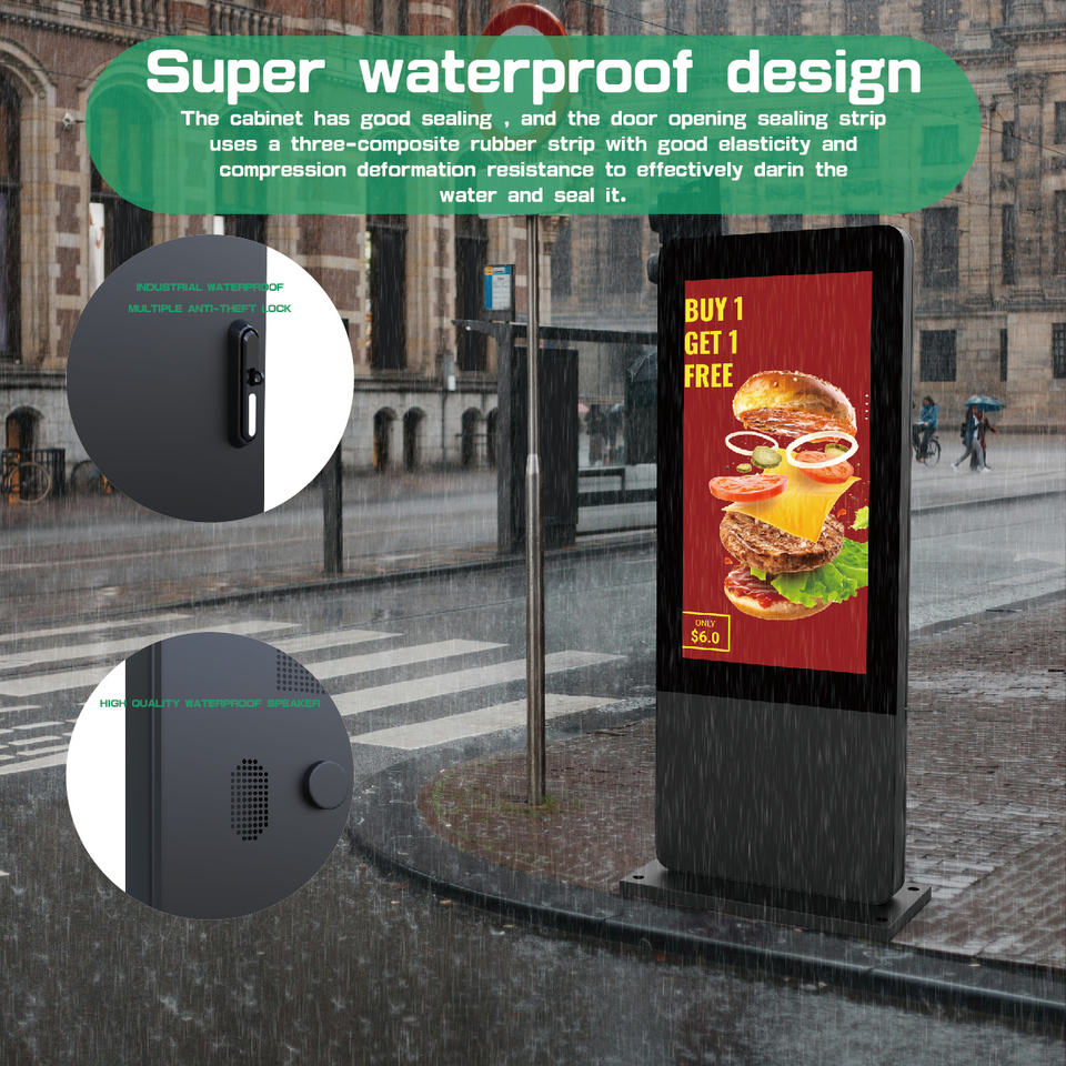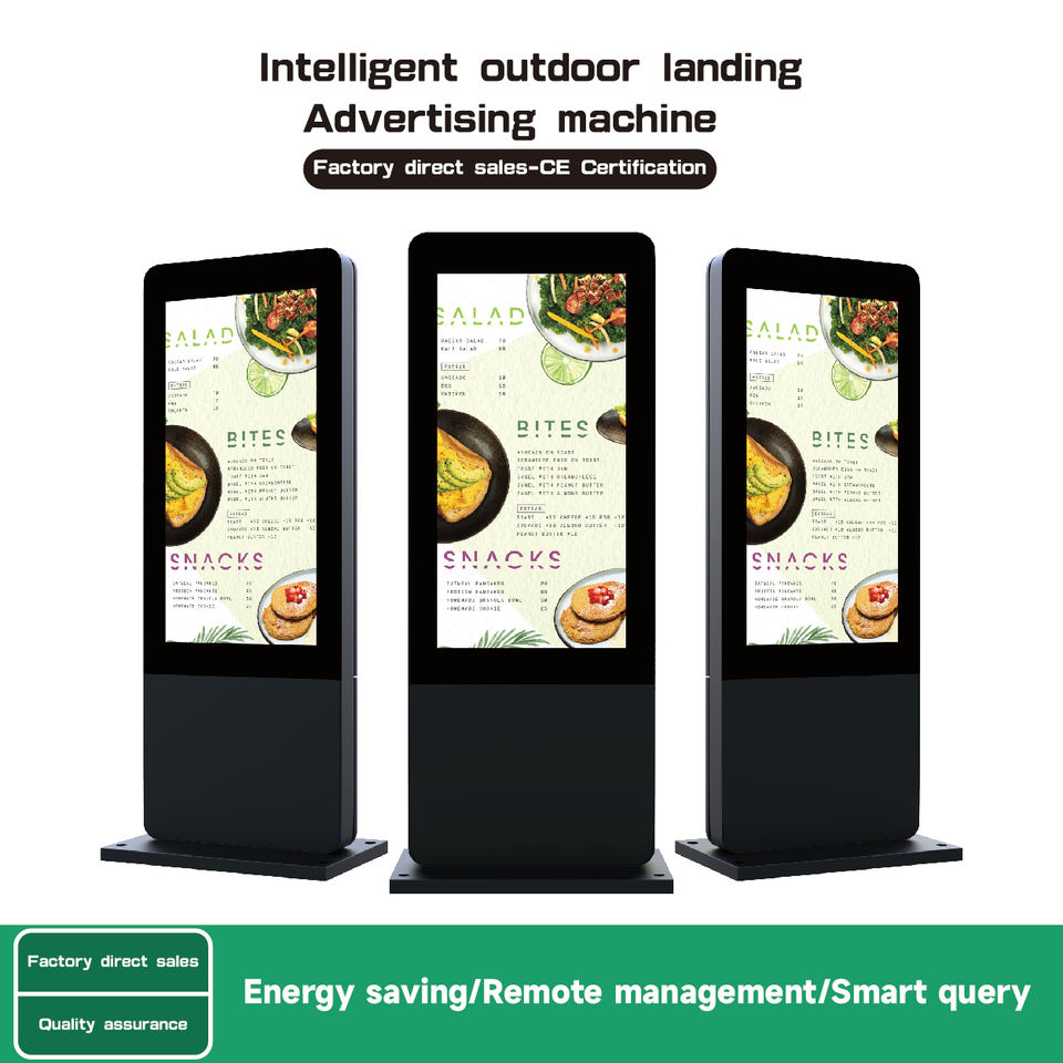 ป้ายดิจิทัลแบบตั้งพื้นกลางแจ้งขนาด 55 65 75 นิ้ว และจอแสดงผล LCD ความสว่างสูงสำหรับโฆษณาแบบดิจิทัล
