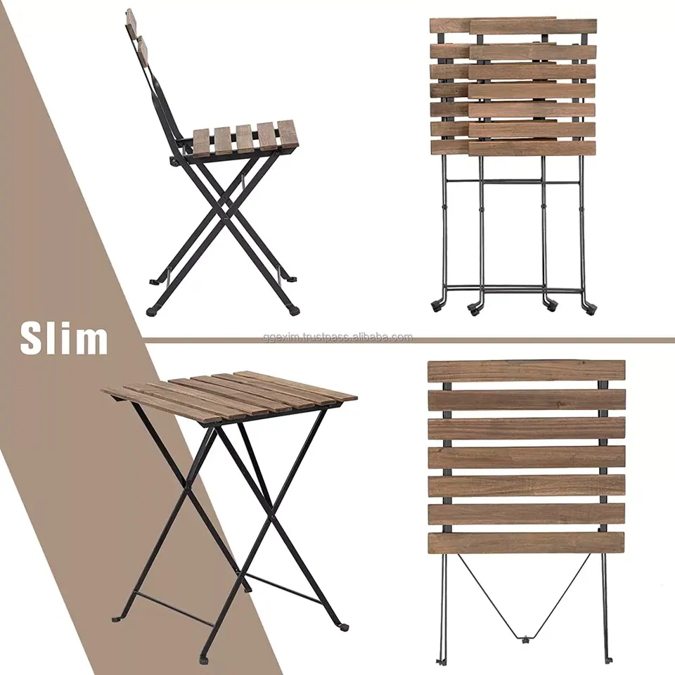 ชุดบิสโทรไม้อะคาเซียกลางแจ้งโต๊ะโครงเหล็กและเก้าอี้สำหรับระเบียงรับประทานอาหารหรือใช้ในโรงพยาบาล