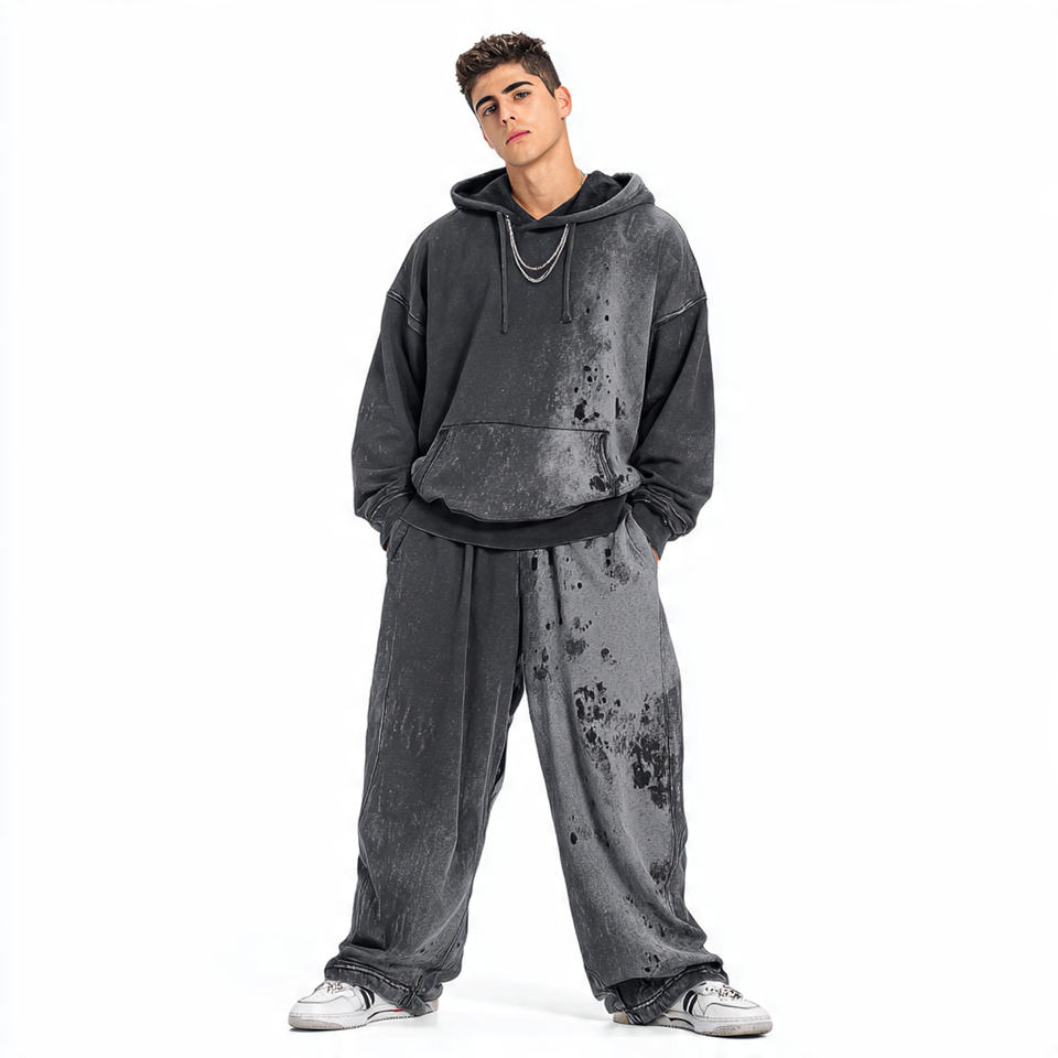 ชื่อสินค้า:กางเกงวอร์มผู้ชายทรงโอเวอร์ไซส์ ผ้ายีนส์ฟอกสี