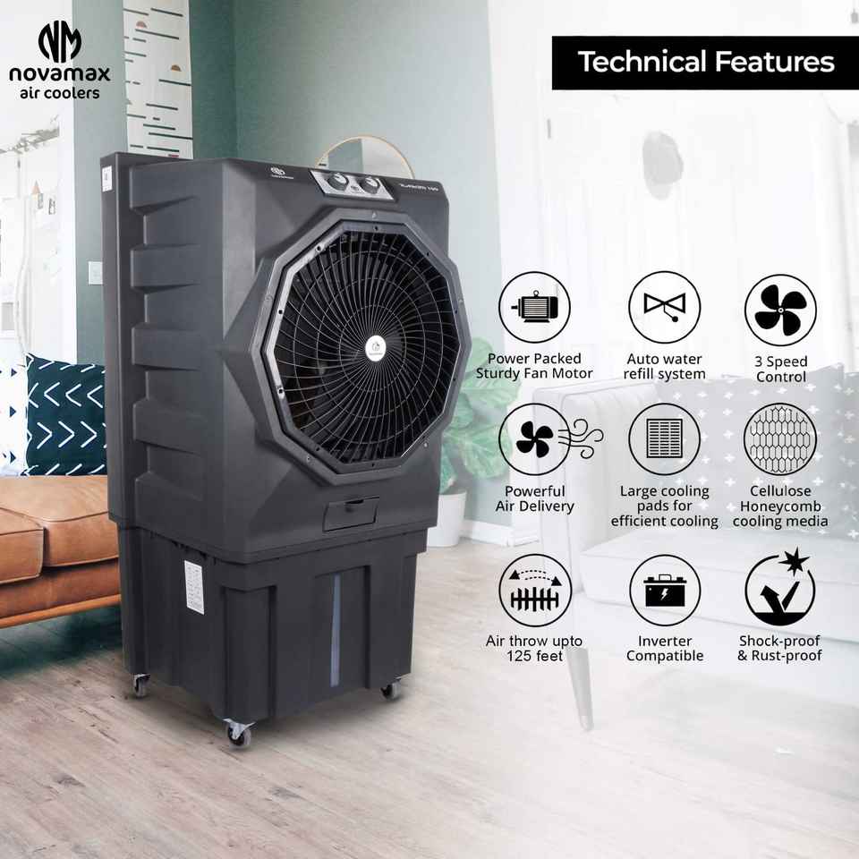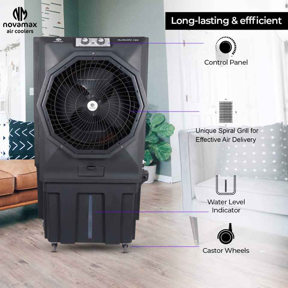 เครื่องทำความเย็นกลางแจ้ง RAMBO 150 ลิตร พร้อมระบบเป่าลมระยะไกล และการตั้งค่าความเร็วได้ 3 ระดับ สำหรับใช้ในสำนักงานและอุตสาหกรรม