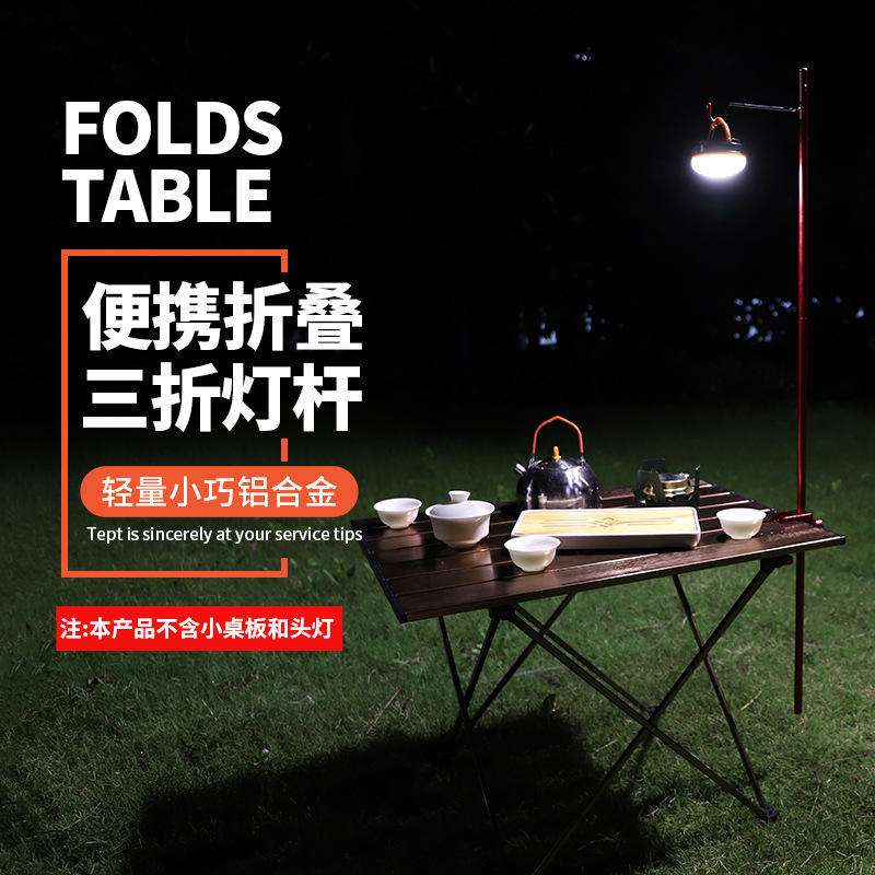 โต๊ะพับอลูมิเนียมอัลลอยด์กลางแจ้งพร้อมขาตั้งโคมไฟ 90 ซม. แบบพกพาสำหรับตั้งแคมป์ปิกนิก