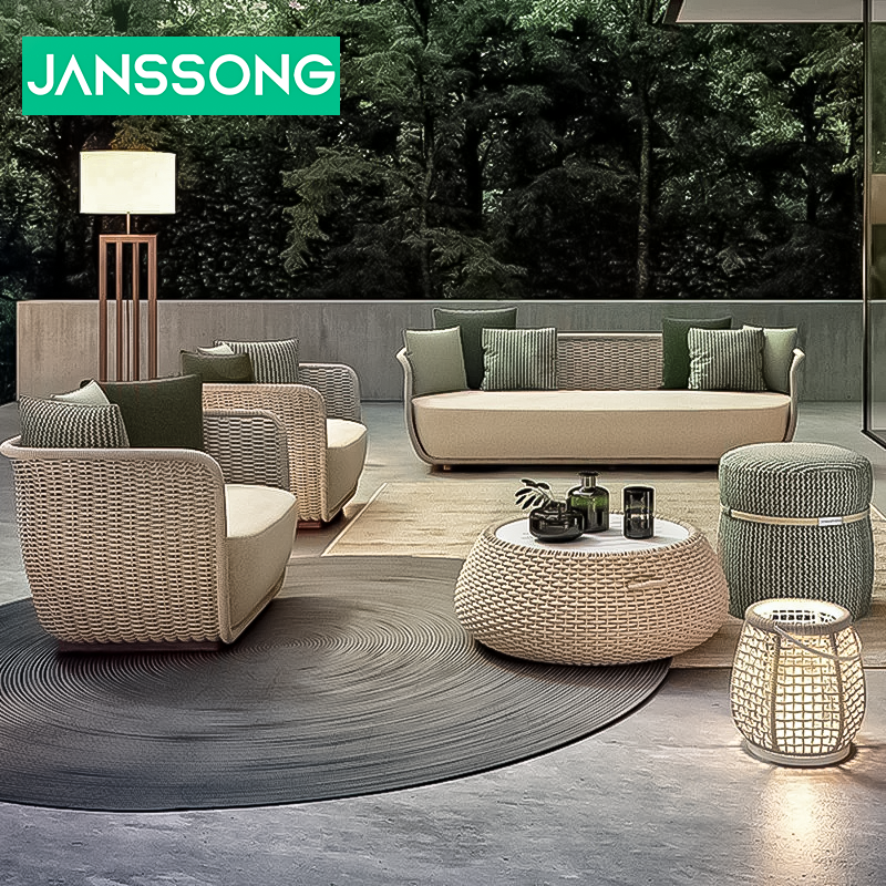 Outdoor Application Custom Rattan Patio Wicker Garden Furniture Metal Frame Sofa Hotel Patio Rope Waterproof Leisure Durable Set