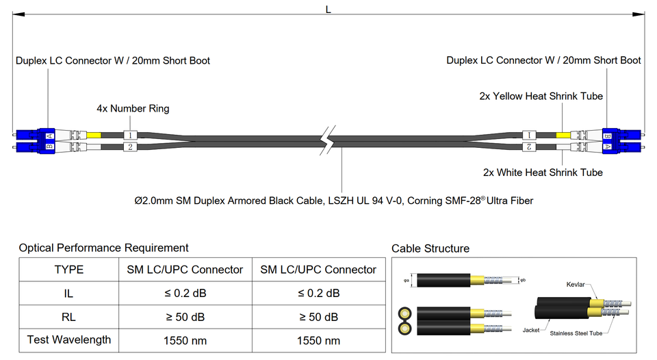 สายแพตช์ไฟเบอร์ออปติก lc/u 20M G657A2แบบ singlemode สีดำ LSZH กันยูวีขนาดเส้นผ่าศูนย์กลาง2.0มิลลิเมตร