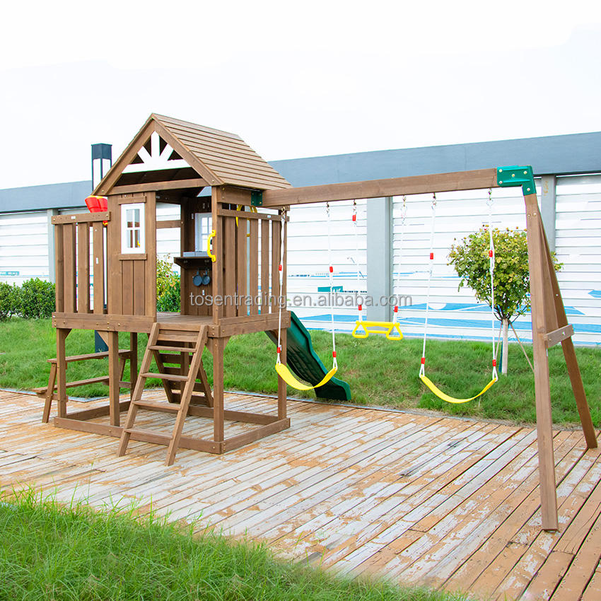 ชุดชิงช้าสนามหญ้ากลางแจ้งพร้อมบ้านเด็กเล่น สไลเดอร์สีเขียว ชุดของเล่นในสวน - สนามเด็กเล่นกลางแจ้งออลอินวันสำหรับเด็ก