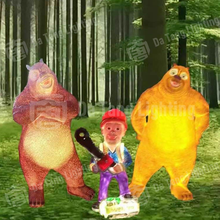 โคมไฟรูปหมีใหญ่สองตัวและหมีหัวโล้นสำหรับตกแต่งสวนสาธารณะและสวนหย่อม ระดับการป้องกัน IP65