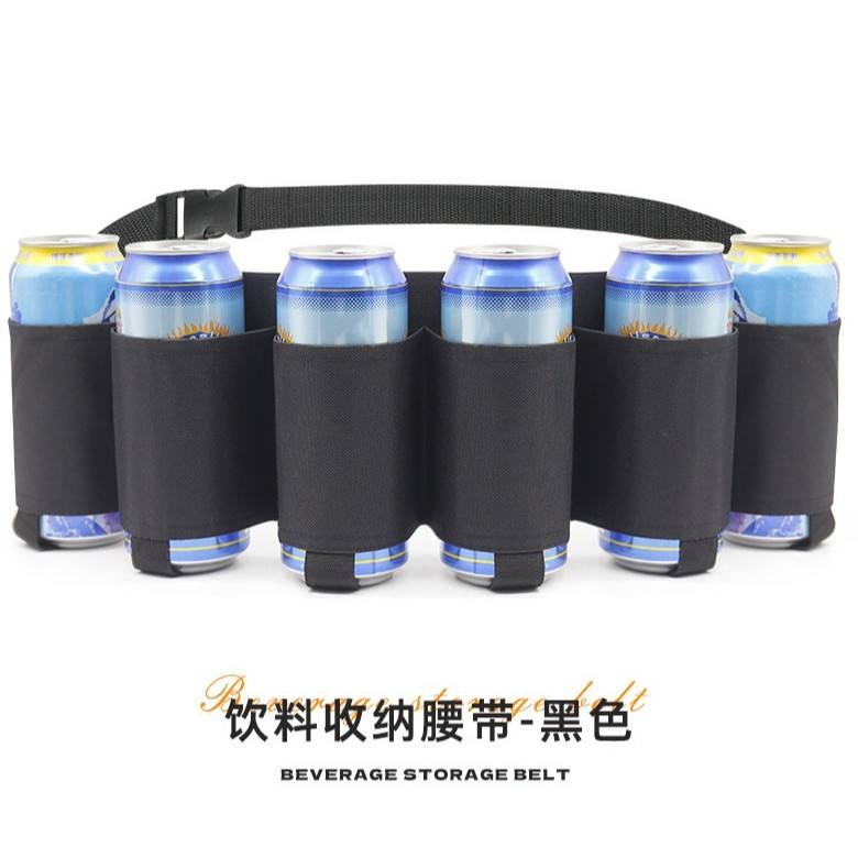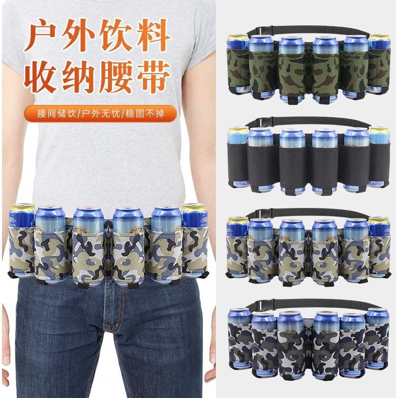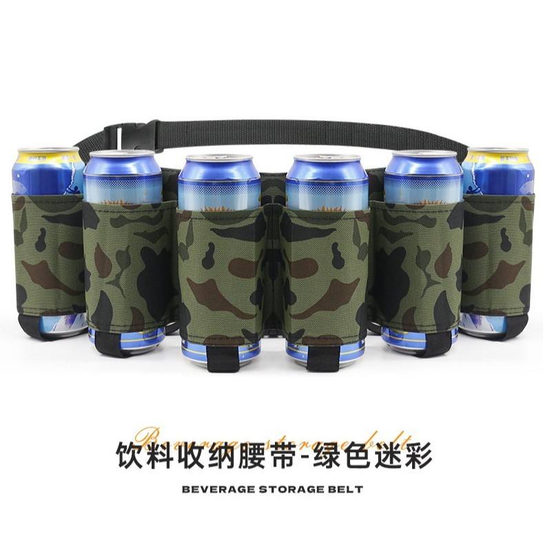 กระเป๋าคาดเอวสำหรับเครื่องดื่มกลางแจ้ง ใส่กระป๋องได้ 6 กระป๋อง เข็มขัดใส่เบียร์ สำหรับผู้ใหญ่ทุกเพศ สีดำลายพราง