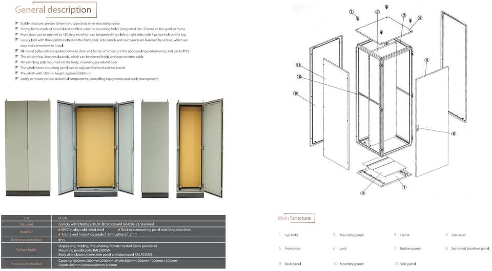ตู้กันน้ำกลางแจ้ง IP55 พร้อมห่วงแขวน 4 จุด และแผงแบ่งส่วน 3 แผง ผลิตจากเหล็ก SPCC ปรับขนาดได้ มีสินค้าในสต็อก