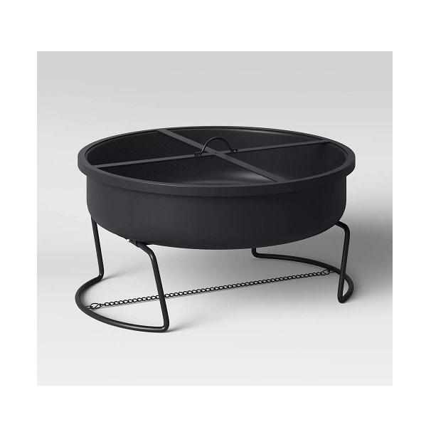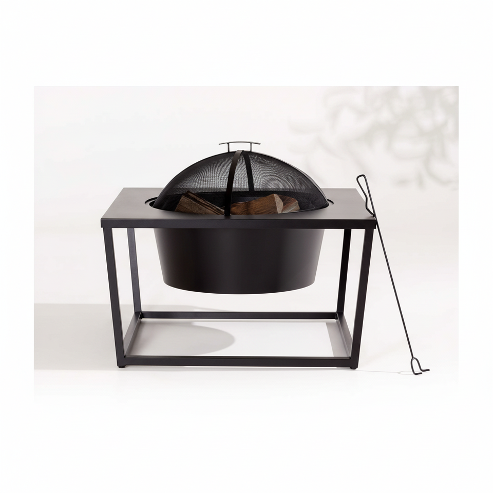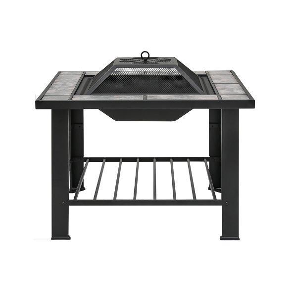 เตาไฟสำหรับตั้งแคมป์กลางแจ้ง พร้อมโต๊ะวางเท้า ใช้สำหรับเผาไม้ มีตะแกรงกันประกายไฟและอุปกรณ์จุดไฟ