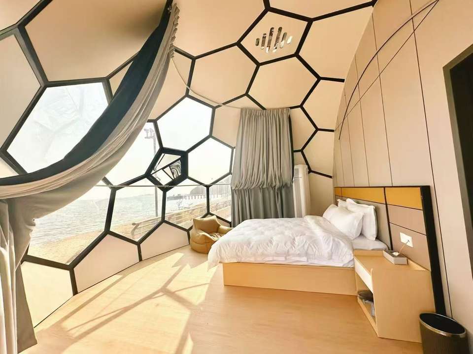 เต็นท์แก้วกลางแจ้งขนาดเส้นผ่าศูนย์กลาง6เมตร2025แก้วรังผึ้งสไตล์ยอดนิยม